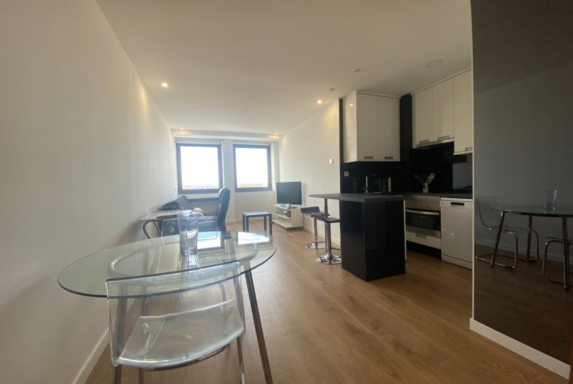 Cuenta con 73 m2 construidos según catastro, distribuidos en amplio salón-comedor con dos grandes ventanales con excelente vistas , cocina americana amueblada y equipada con electrodomésticos, dormitorio doble con armarios empotrados y baño completo con ducha