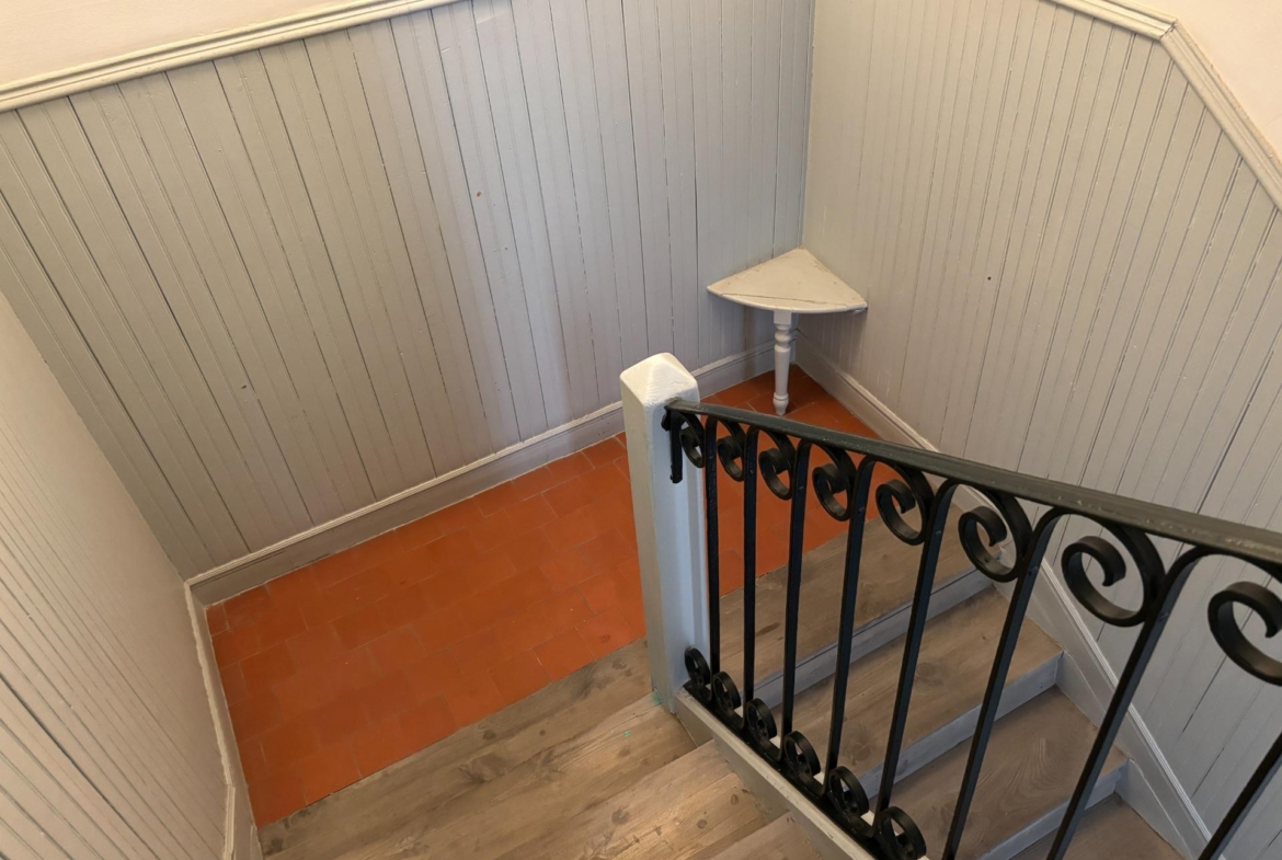 El salón es un espacio acogedor y luminoso con suelos de baldosa hidráulica que aportan carácter. Cuenta con iluminación natural a través de vélux y una distribución muy bien pensada.