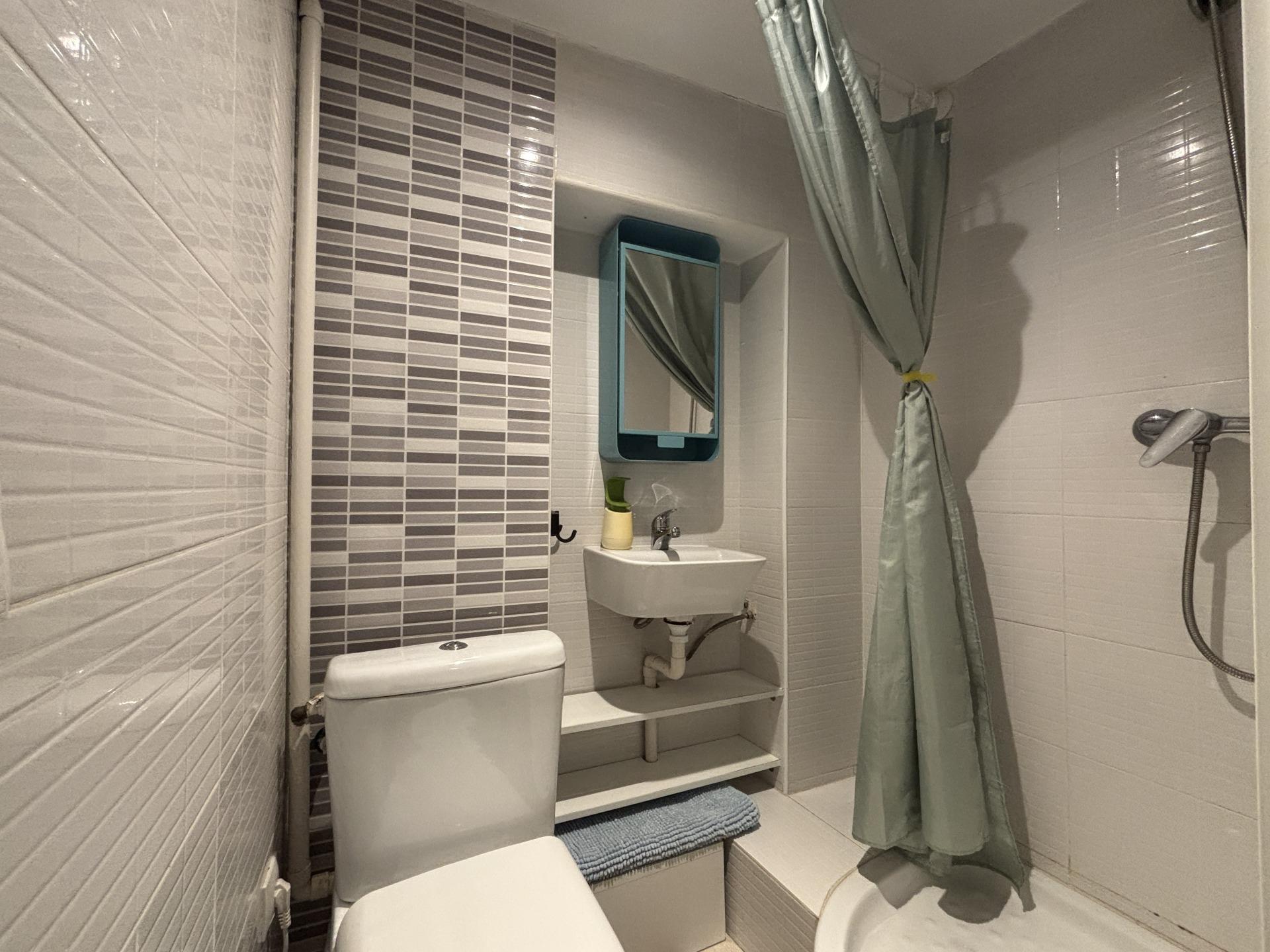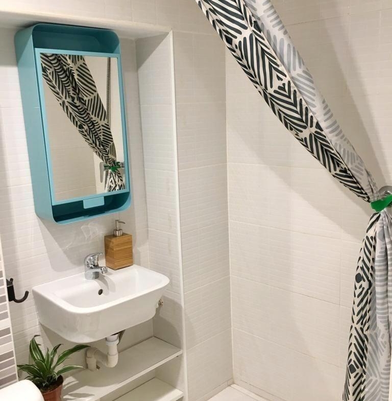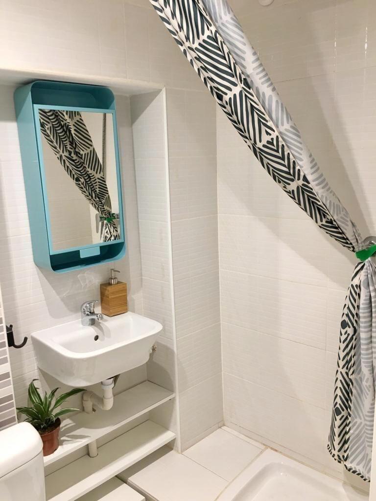 El cuarto de baño es completo con plato de ducha, con un estilo moderno y fresco.
