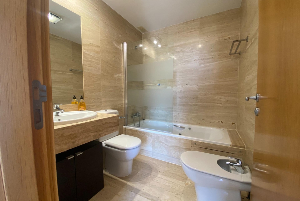 La calefacción por suelo radiante de gas natural central con contador individual y aire acondicionado por conductos, agua caliente central con contador individual. Gastos de comunidad e IBI son a cargo propiedad. Luz, calefacción y agua son a cargo del inquilino, al igual que la tasa de basuras.