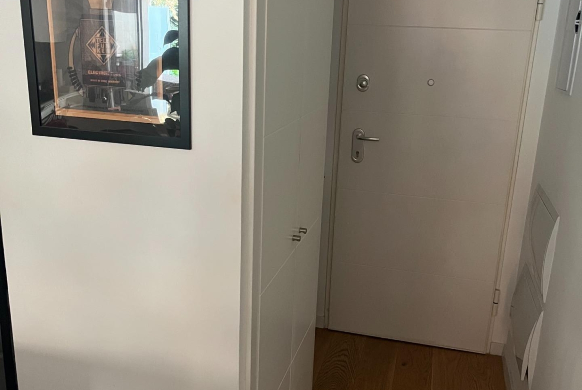 Por otro lado, el dormitorio muy luminoso se encuentra equipado con armarios empotrados para optimizar el espacio, está separado de la zona de salón y cocina, y no tiene ventana.
