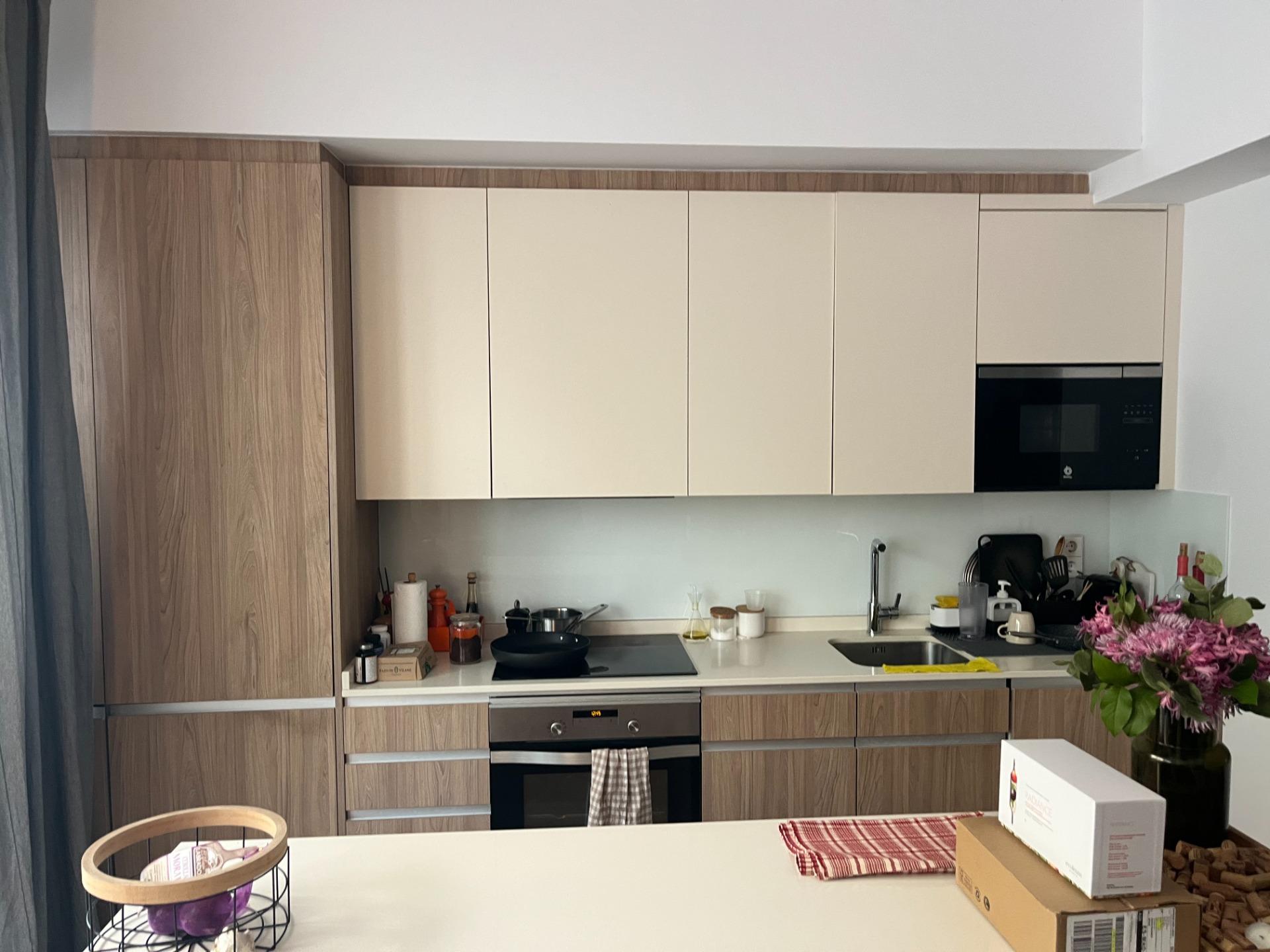 La vivienda se distribuye con un concepto moderno y abierto que integra el salón con la cocina, maximizando la sensación de amplitud y conectando directamente con el exterior.