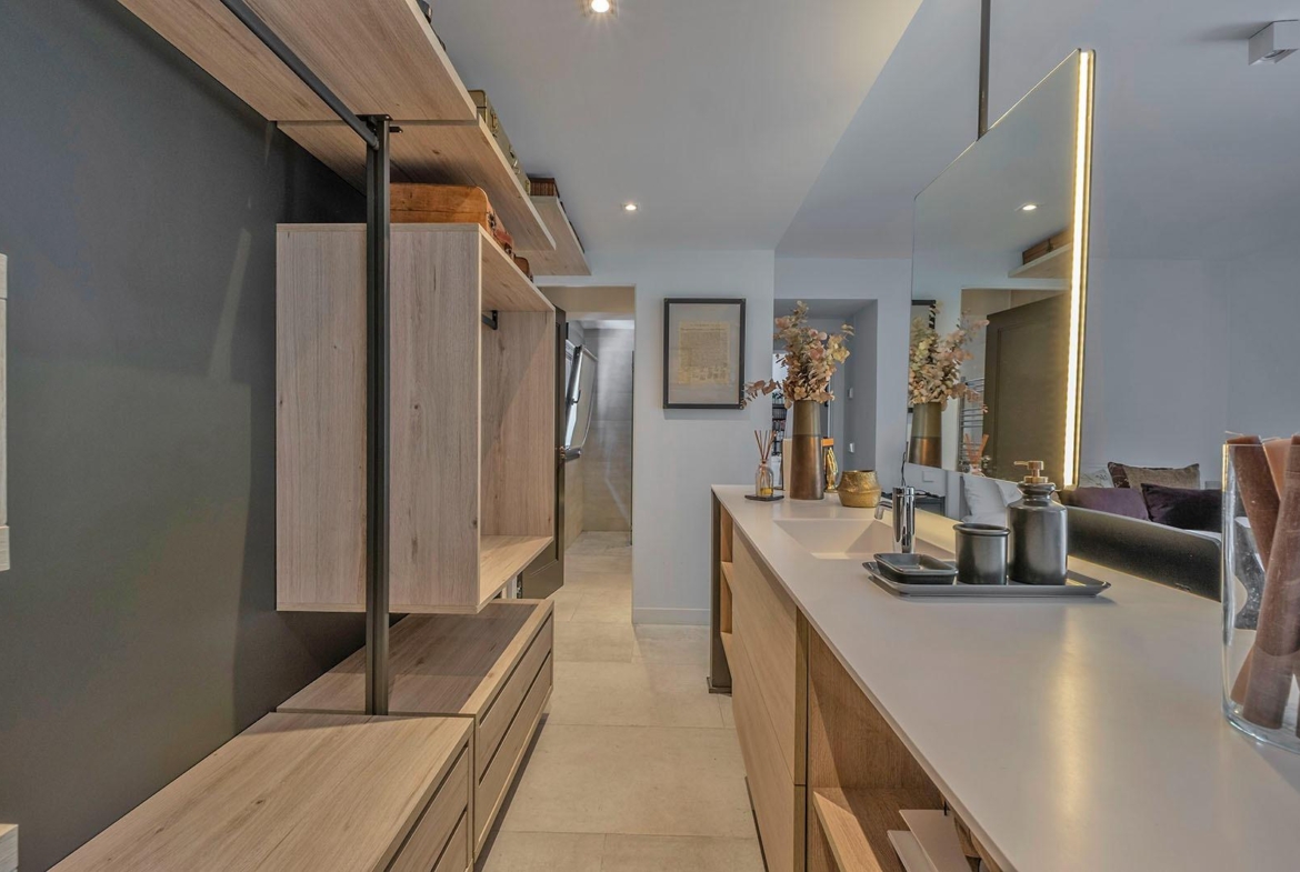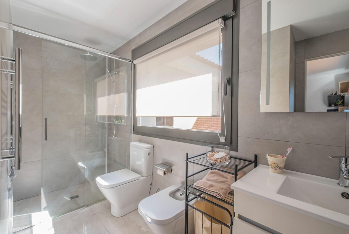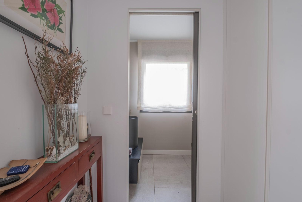 Los materiales utilizados y la ejecución se hicieron con la máxima calidad. Suelos de piedra, carpintería con rotura de puente térmico y oscilobatiente, persianas eléctricas, carpintería de madera lacada en blanco y gris consiguiendo un diseño muy elegante.