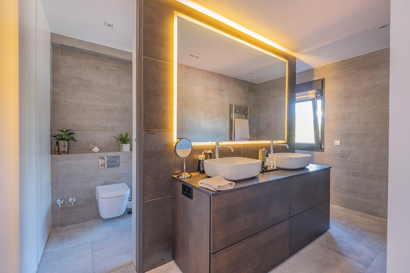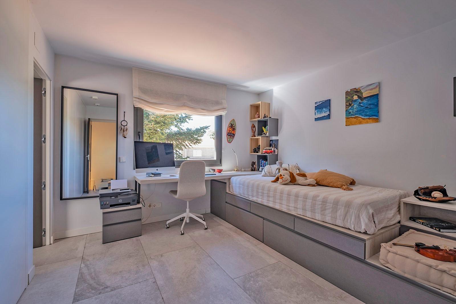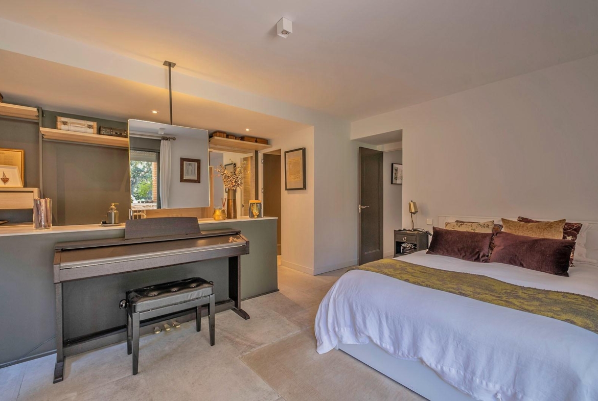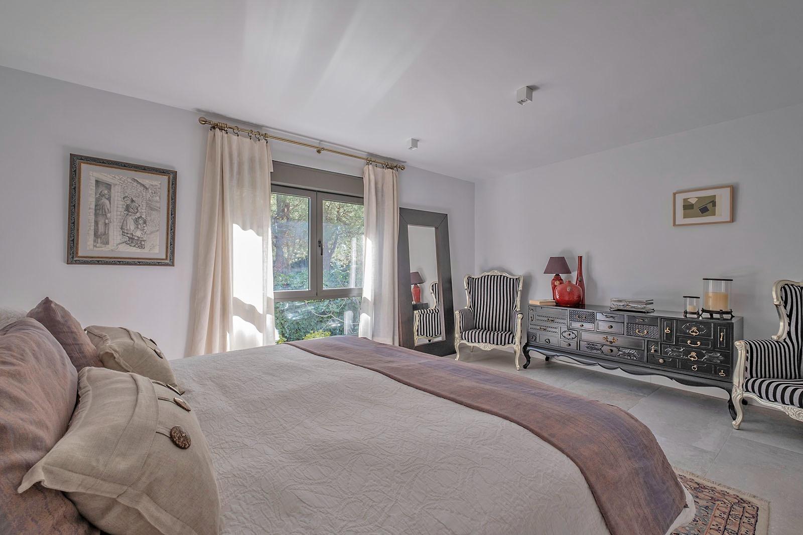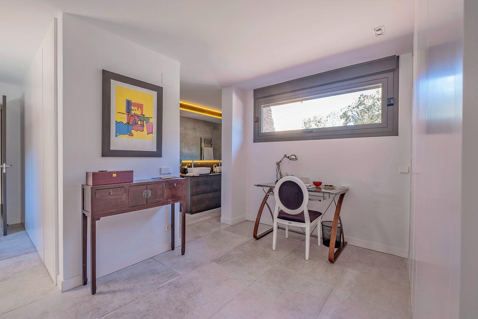 En la planta primera encontramos un imponente dormitorio principal con vestidor, zona de despacho y cuarto de baño, muy luminoso y agradable. Dos dormitorios dobles adicionales en suite con baño incorporado.