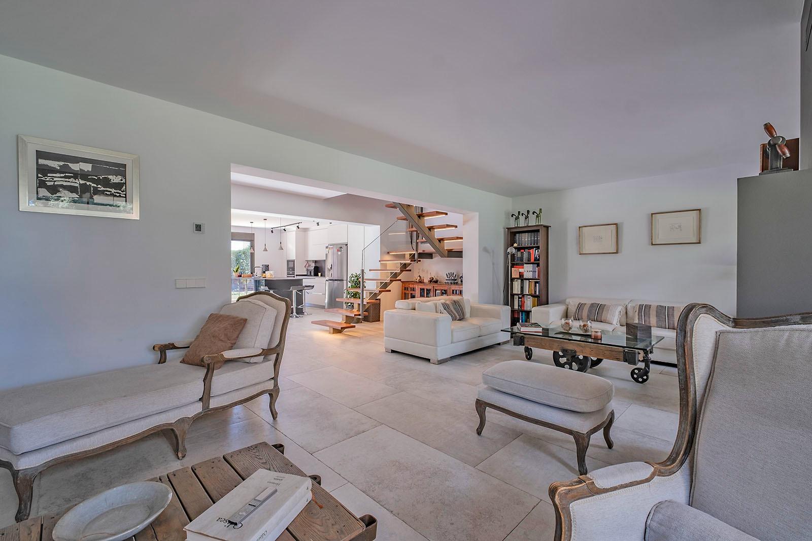 La planta baja está distribuida con un concepto abierto en la zona noble, desde el vestíbulo se accede al salón y zona de estar con una agradable chimenea de leña orientados al porche trasero que da a la parte amplia del jardín, hacia la zona del frente tenemos una gran cocina de alta gama con isla y amplia zona de comedor. En la planta baja cuenta también con un amplio dormitorio en suite con vestidor y baño completo, así como un aseo para invitados.