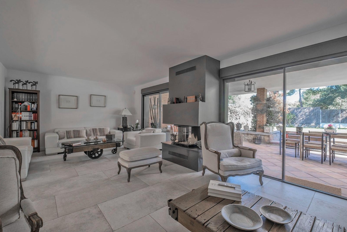 Presentamos esta magnífica casa unifamiliar, recién reformada, de diseño, ubicada en la prestigiosa urbanización de Montepríncipe, en Boadilla del Monte.