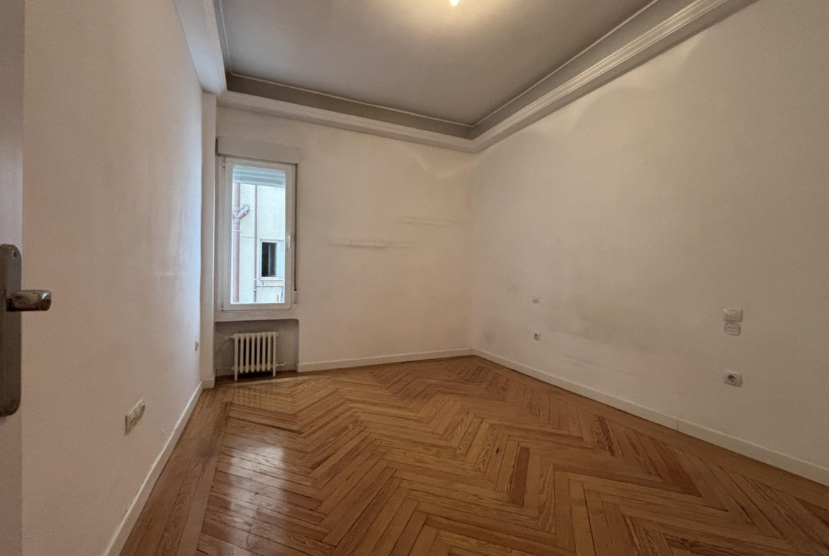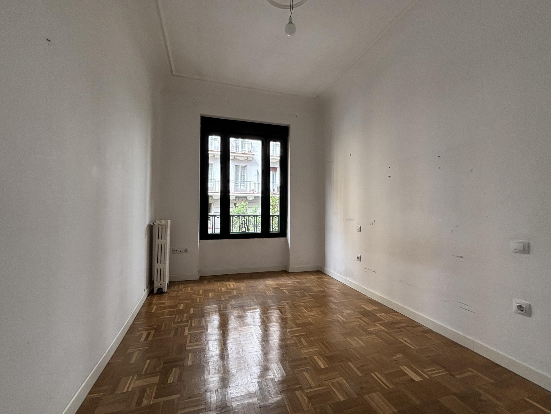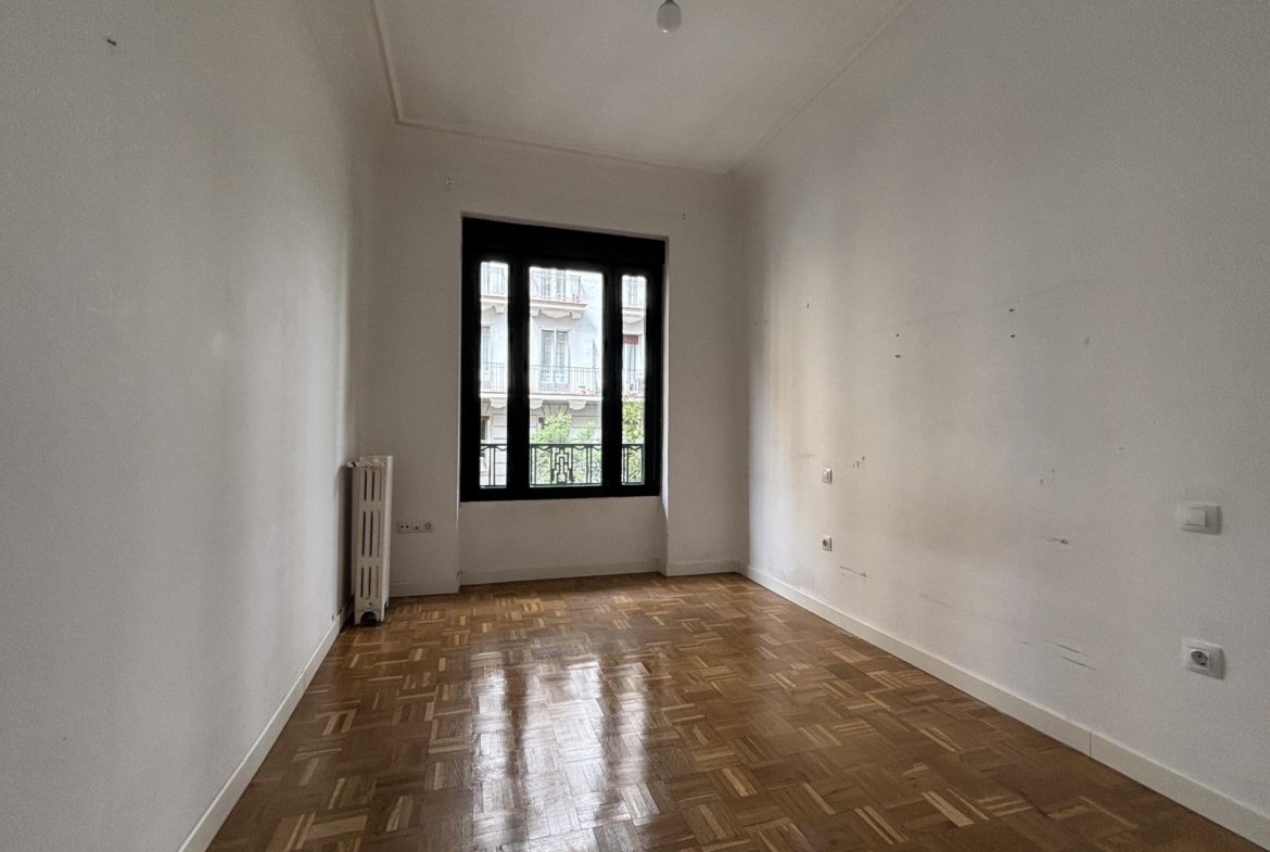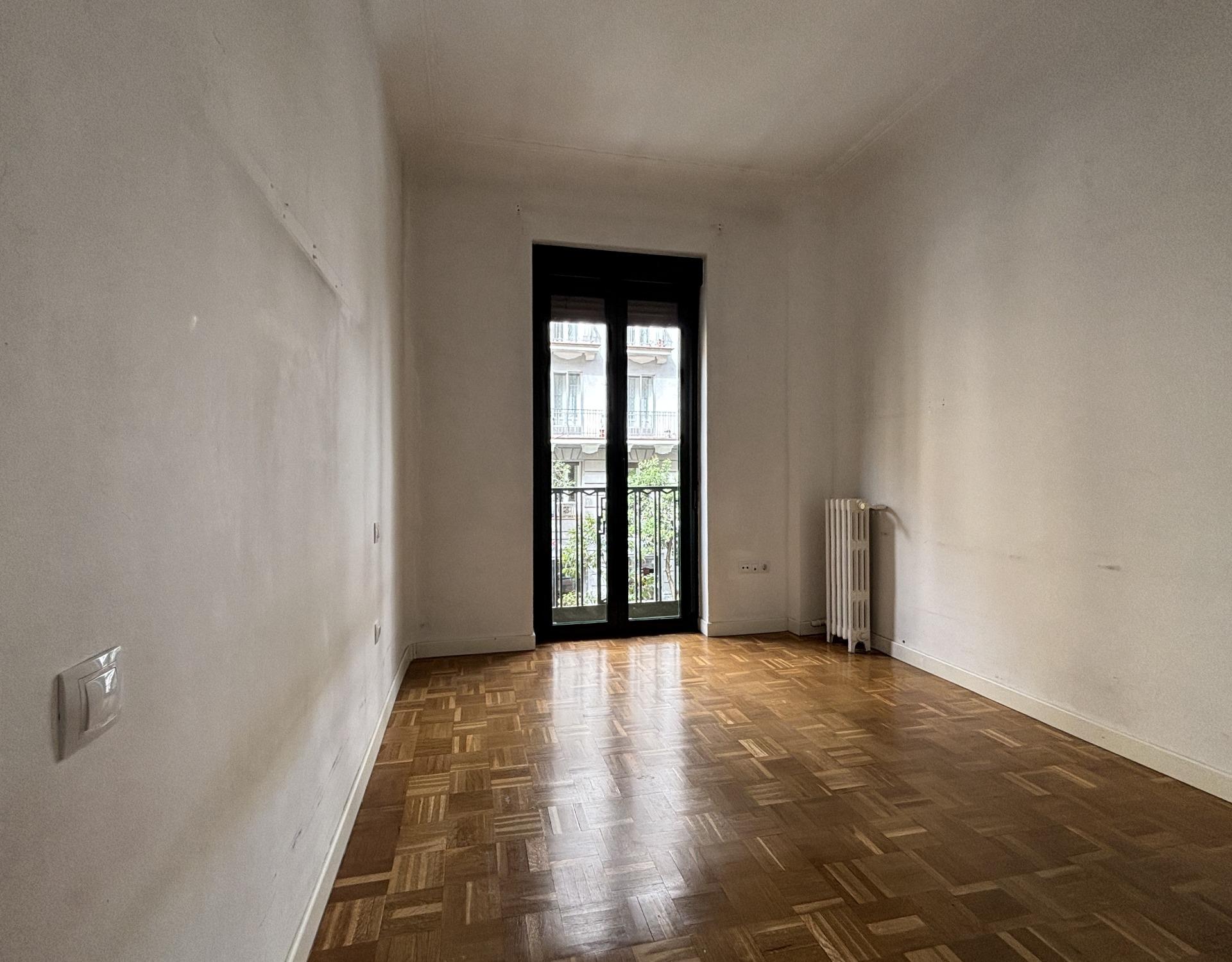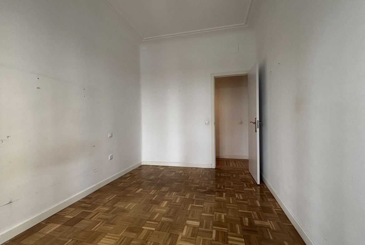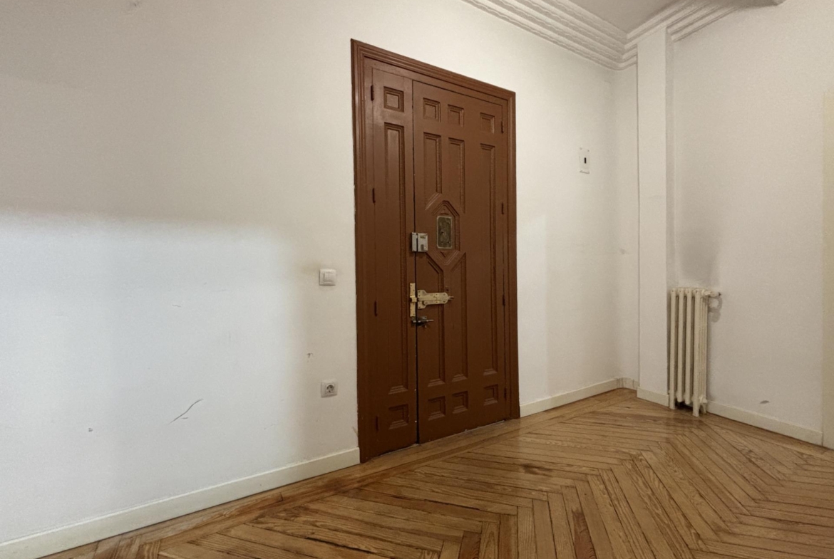 La vivienda, situada en una primera planta exterior, destaca por su elegancia estructural, conservando elementos arquitectónicos originales como molduras clásicas, radiadores de hierro fundido y una combinación de suelos de parquet en espiga y mosaico que aportan un carácter único. Actualmente requiere una actualización/reforma, ofreciendo múltiples posibilidades de redistribución gracias a su generosa superficie, y a no tener muros de carga.