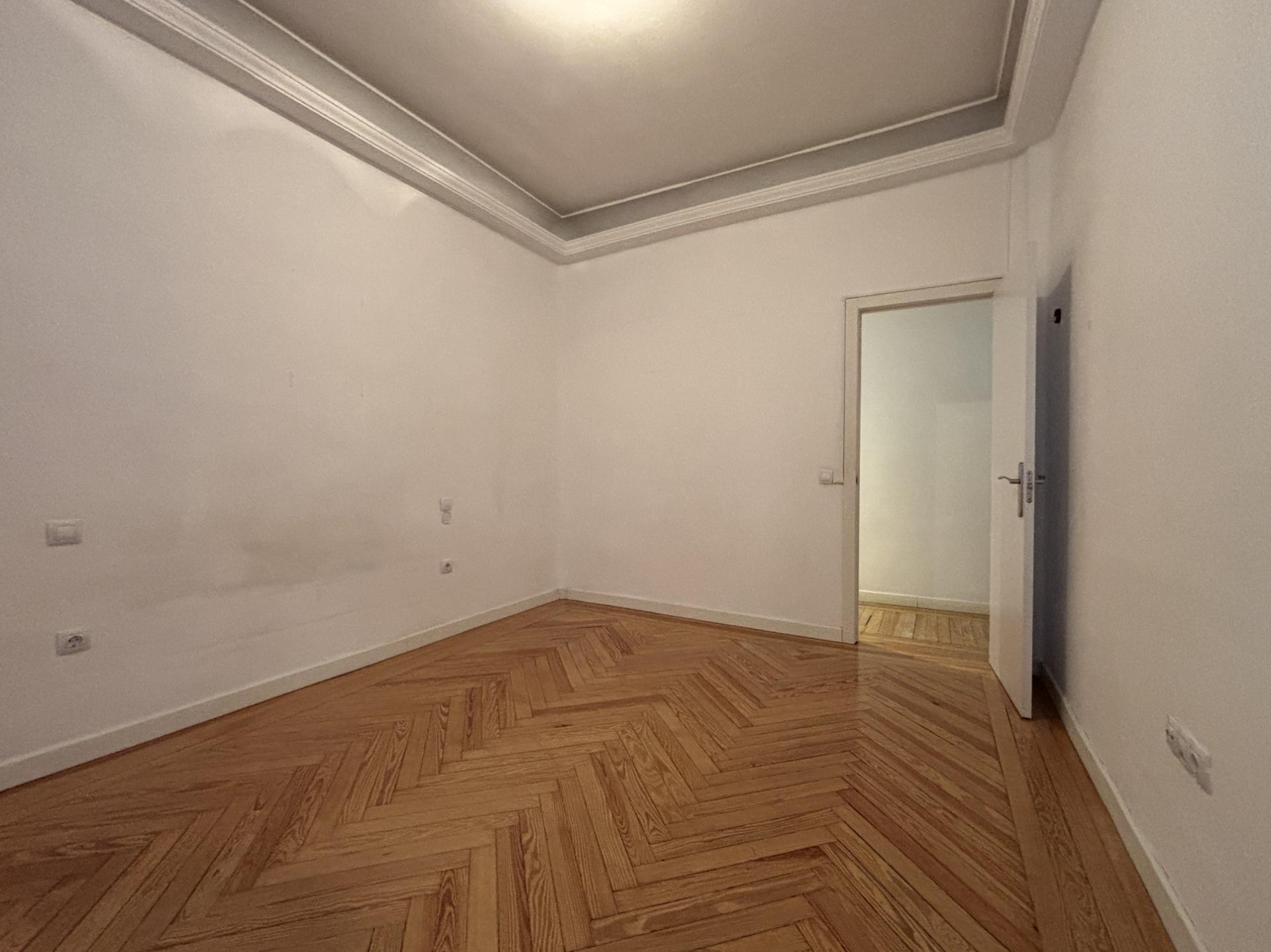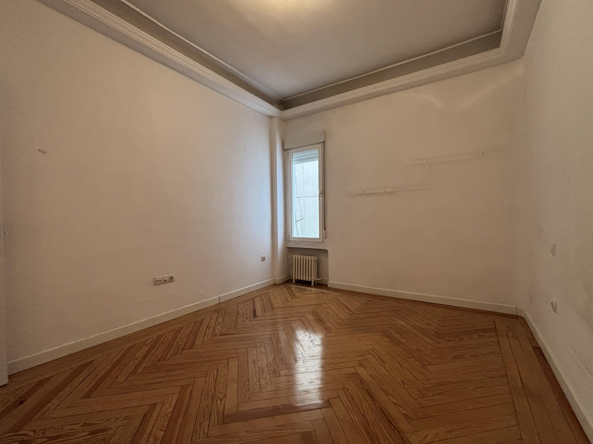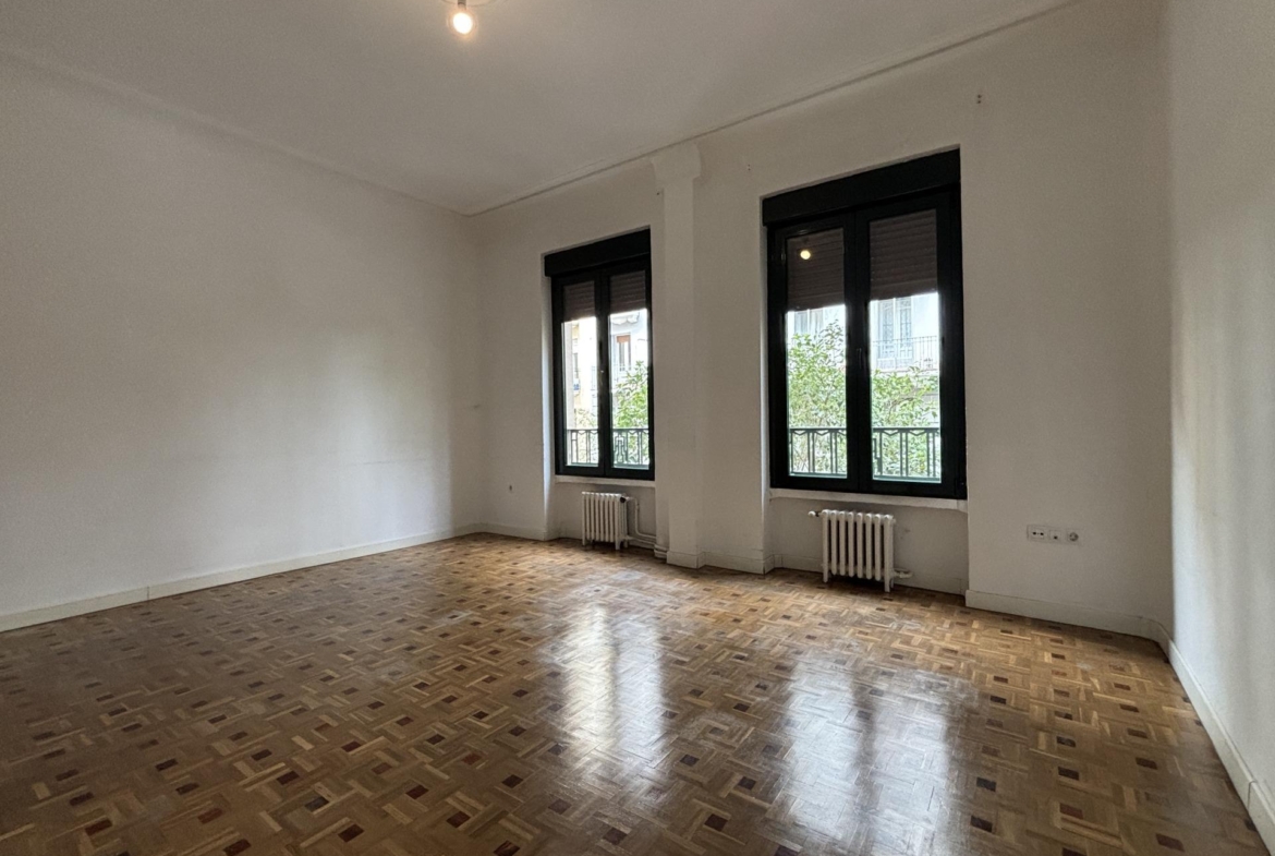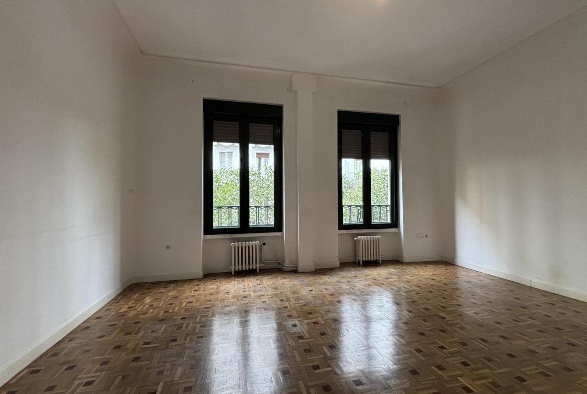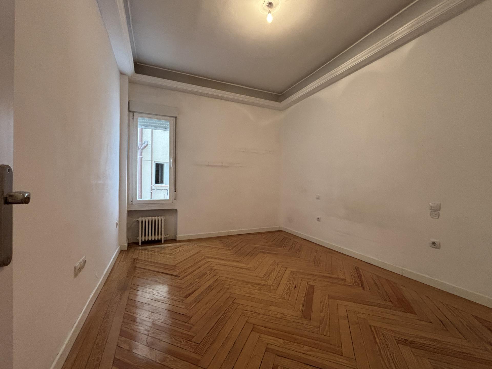 La vivienda, situada en una primera planta exterior, destaca por su elegancia estructural, conservando elementos arquitectónicos originales como molduras clásicas, radiadores de hierro fundido y una combinación de suelos de parquet en espiga y mosaico que aportan un carácter único. Actualmente requiere una actualización/reforma, ofreciendo múltiples posibilidades de redistribución gracias a su generosa superficie, y a no tener muros de carga.