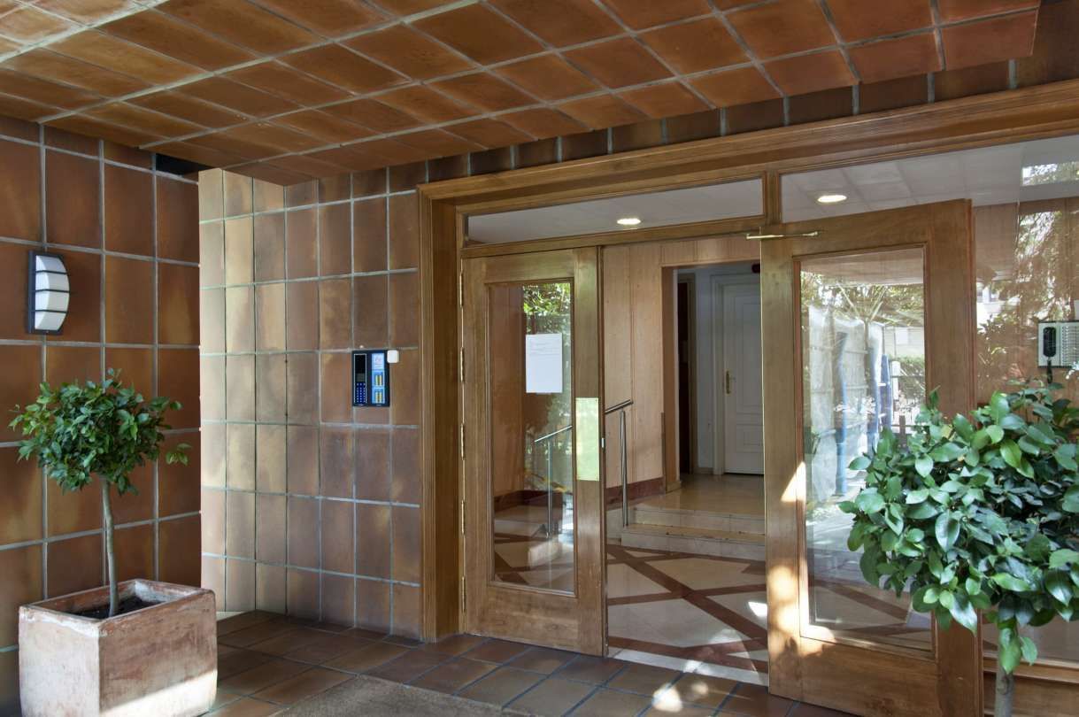 Situada en una planta 15, ofrece espectaculares vistas gracias a sus grandes ventanales, y está rodeada por agradables zonas comunes que incluyen una piscina comunitaria y jardines. Buen edificio y buen portal, varios ascensores y portero físico.